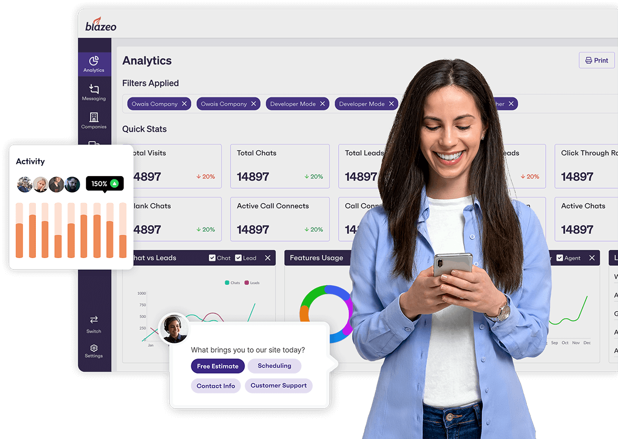 Ignite 40% more leads with Blazeo’s AI chatbots, human call centers & appointment tools—available 24/7. Book a demo to see Blazeo in action.