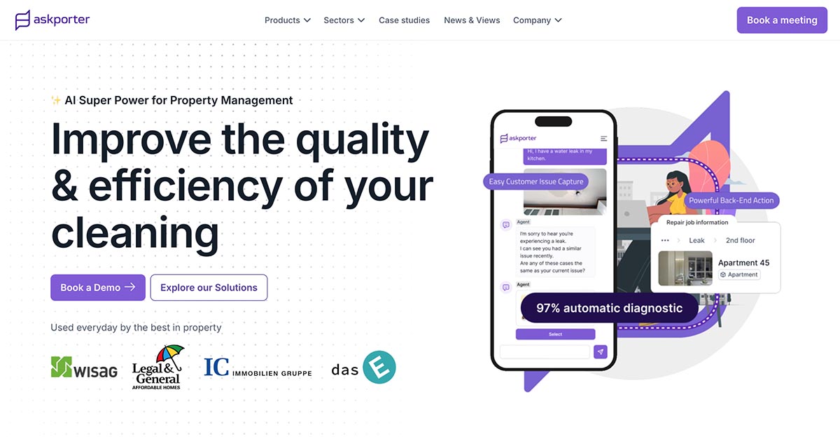The prop-tech industry is notorious for fragmented software—CRMs for tenants, ERPs for assets, and spreadsheets for everything else. AskPorter targets the specific pain point of repairs and maintenance, using a no-code platform to integrate these silos. They aren't selling a 'platform' in the abstract; they are selling an AI assistant that automates the intake, diagnosis, and routing of maintenance tasks, directly addressing the operational drag that costs property managers hours daily.