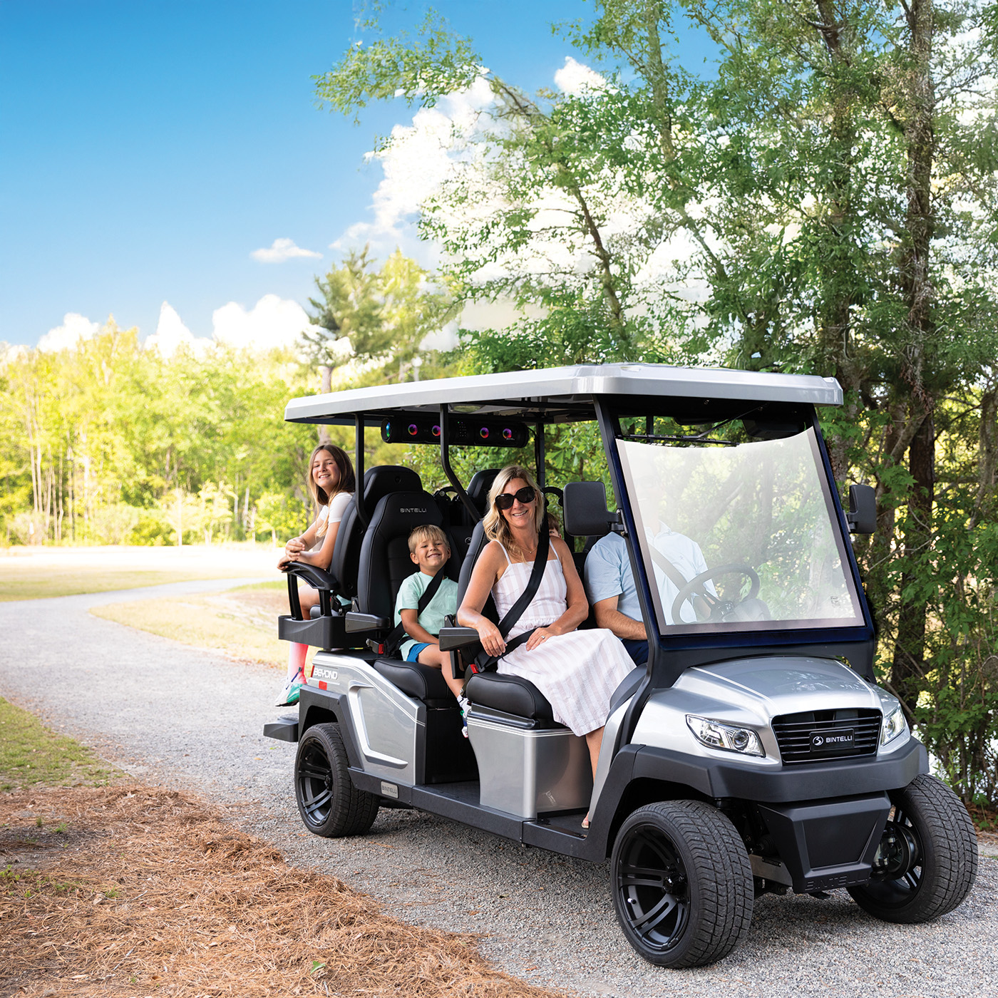 Live Life Fully Charged with Bintelli. Discover the joy of exploring your next adventure with the highest quality fully loaded electric golf carts and ebikes on the market.