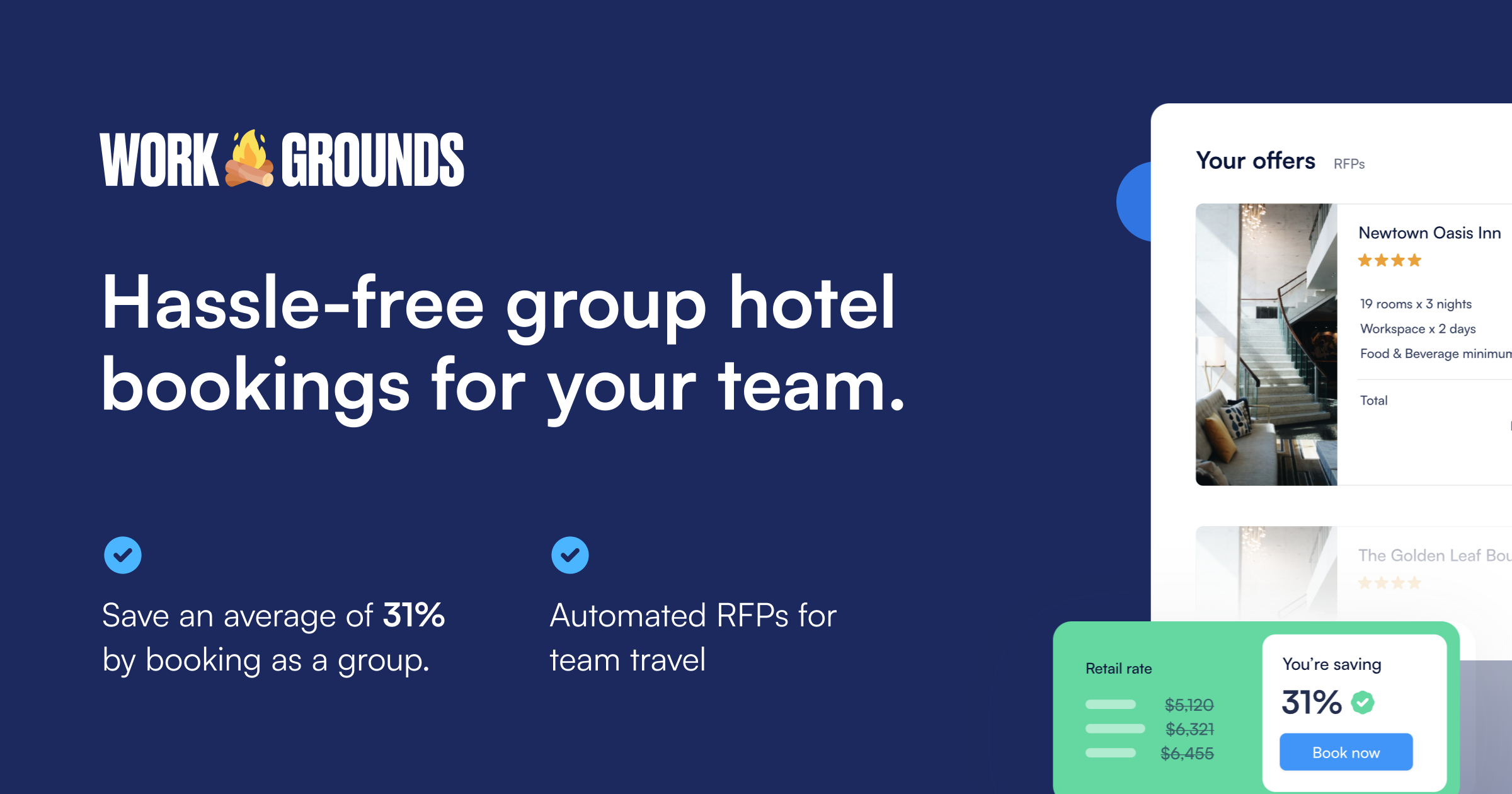 Workgrounds. Book a hotel for a group with automated RFPs